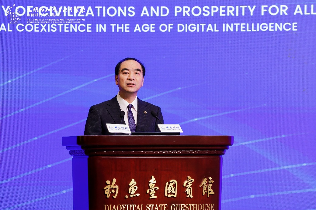于英杰介绍了北京在建设全球数字经济标杆城市方面取得的新进展。他表示,党的二十届四中全会和习近平总书记对数字中国建设作出重要指示。本届论坛聚焦数字化与智能化浪潮下的人类社会变革与文明互动,研讨如何以数智创新谋发展、以文明交融聚人心,意义深远。未来,北京市将持续推动数字技术与文化深度融合,深化教育领域国际交流合作,继续支持北京论坛汇聚全球智慧,为文明创新演进贡献北京智慧。